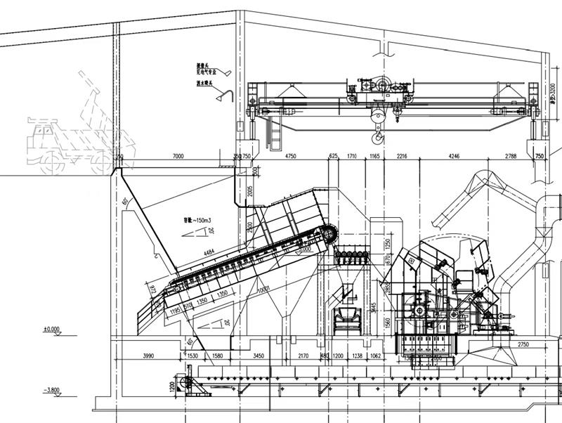 圖解重型板式給料機和泥石分離機的工藝布置。